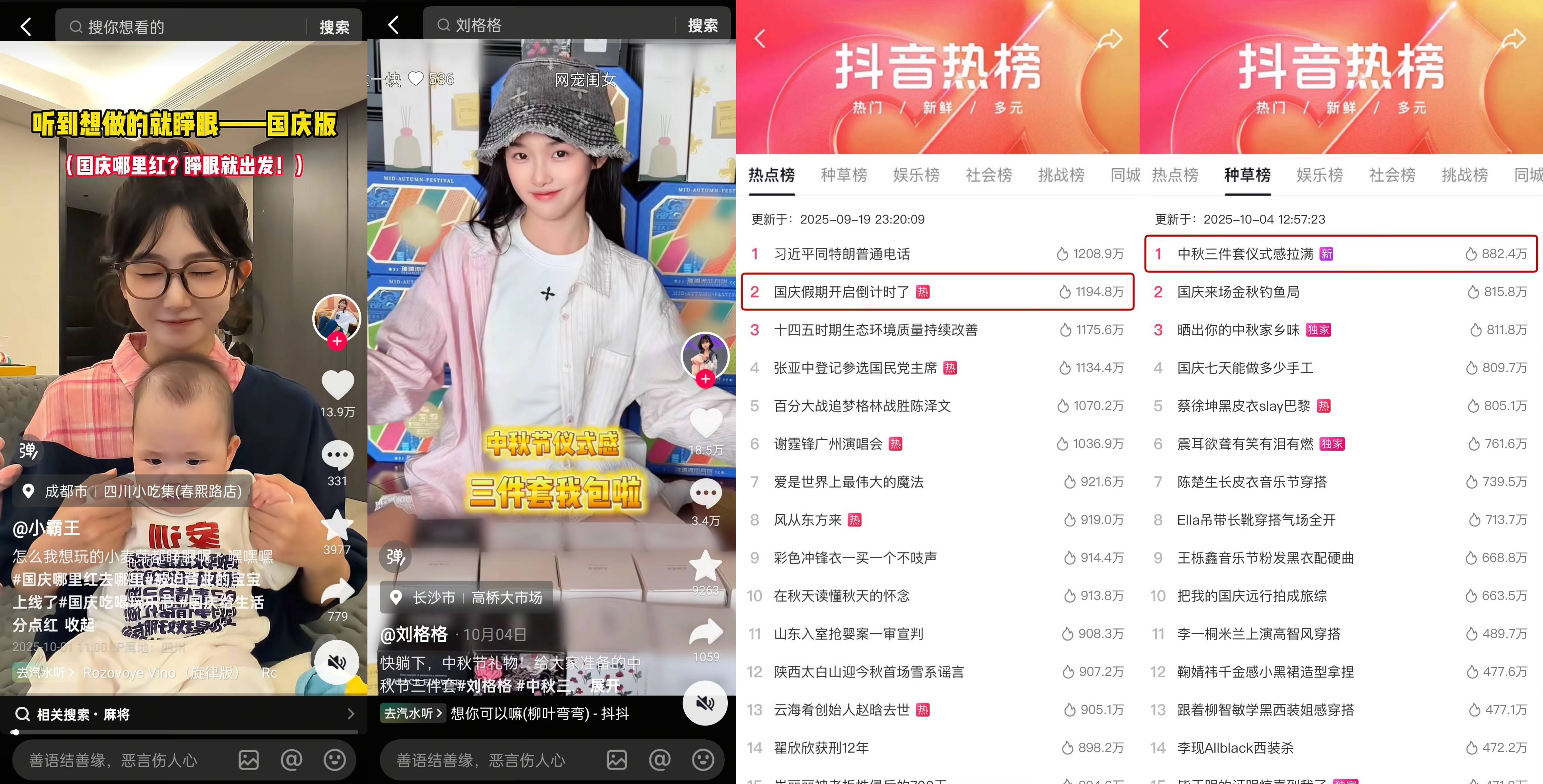 人们忙着在清明上河园跟NPC对戏、自驾到景德镇加入“鸡排大军”、奔赴云南小城排一份弥勒卤鸡……今年国庆、中秋连休八天的长假,不少人在各地玩出花样,抖音也成了大型分“红”现场:大家在平台发现更多吃喝玩乐好“趣”处灵感的同时,也分享着过节的喜悦时刻,不止有国庆的红火氛围,还有红气满满的假期消费体验。 在充满热闹烟火气的国庆消费图景中,不难看出这届消费者逐渐倾向于“为情绪买单,为体验付费”。抖音生活服务预先洞察到用户假期需求的变化,用一场热闹红火的「抖音国庆吃喝玩乐节」带用户解锁假期新体验。活动围绕国庆、中秋两大节点,通过打造特色品类营销主题,联动多位明星及头部达人共创热点话题等动作,有效促进用户搜索及交易转化。截至目前,支付GMV同比增长近七成,在为用户提供更多假日消费新选择的同时,也助力多类型商家抓住了节点增长的爆发机会,轻松收获好生意。 01:明星营销玩法种草“红店” ,助力品牌抓住假日“流量高地” 节前做攻略已成假期“刚需”,不少商家纷纷献出品牌的“花式作业”,如何成为大众的最优选,从感知层面做“首要吸引”成为关键。抖音生活服务平台具备丰富多元的明星资源,「抖音国庆吃喝玩乐节」整合代言人特色,以明星影响力和号召力为撬动支点,深入挖掘明星营销的“内容力”,开发明星营销多样玩法。 9月19日,抖音生活服务邀请国庆代言人韩红、国庆品类代言人马思纯、潘玮柏、万妮达共同组成“分红天团”,四位代言人聚焦假期吃喝玩乐等高频消费场景,共创探店体验等优质内容,为用户提供更多假日新灵感的同时,关联带动地方宝藏小店。 韩红与抖音生活服务官方抖音号共创首发Vlog《刷爆最红的吃喝玩乐地》,韩红在火锅店里大口炫毛肚、走进山野民宿感受风吹、鸟鸣、美食、美景带来的治愈感穿透屏幕,引发网友假期打卡同款“红店”的心动。 活动特别联动13家商家共同开启假期生活方式推荐,在韩红邀请大家推荐国庆去处的号召下,各地网友积极分享自己的假期奇遇,为了更快速地帮助大众找到同款宝藏打卡地,「抖音国庆吃喝玩乐节」 联动商家推出“国庆红火商家打卡地图”,打卡地点关联消费心动,也串联起吃喝玩乐的生意,无形中助力更多商家抓住了这波明星带来的流量,为后续交易转化奠定基础。 除韩红之外,其他三位代言人则“另辟蹊径”,结合自己的假期生活计划,为用户提供假期旅行、美食、休闲娱乐攻略参考。在与抖音生活服务官方抖音号共创首发主题短视频中,马思纯在酒店享受独处时光,给自己放松充电;潘玮柏和好友聚餐吃蟹,用美食慰藉工作的疲惫;万妮达在潮流livehouse跟着节奏嗨跳,自由浓度拉满。这些有趣的假期生活方式,无形中带用户细化了“假期怎么玩”的构想,关联带动更多同款商户被种草。 活动期间,抖音生活服务持续发布明星视频花絮,并在官方账号设置线上打卡玩法和线下透卡互动,实现明星粉丝圈曝光突破1521万+。为了让更多人一起加入这场分红快乐,抖音生活服务特别联动北京国贸地铁站,在人们常见的线下场景中完成“号召渗透”,不少粉丝纷纷路过打卡,热度曝光超927万。基于高频次、多维度的沟通,抖音国庆吃喝玩乐节的“快乐方案”被无数人看见,更多用户跟随指引,上抖音搜索关键词“国庆吃喝玩乐”进入活动会场,在各种品牌商家的过节商品选项中,找到钟意的过节方式和好去处。 在活动众多的国庆假期,抖音生活服务以明星营销作为突破口,通过契合假日消费场景的内容共创,吸引更多用户主动参与到活动中,打卡下单的同时,在平台中分享给更多人,最终形成热闹的“内容场”,其中真实可信的“自来水”推荐,又让各类吃喝玩乐“红店”成为用户的自然选择,帮商家在假期迎来生意爆发。 02:长周期达人热点话题玩法 ,为假期生意增长续航 借助明星营销引爆关注的同时,抖音生活服务还针对大众在假期不同节点的情绪与消费需求,携手多位头部达人展开全周期的“保姆级”陪伴,用福利资讯、热点话题等持续锁定用户注意力,引导用户跟随行动,最终实现对假期消费的全程风向引领,助力商家生意长红。 基于节前筹备、在途尽兴、中秋团圆三大节点,有节奏分阶段地完成节点营销渗透,活动初期,将扁平的国庆出游攻略变得立体生动起来,为大众提供参考灵感的同时,炒热关注度,当话题热度持续爆发,在活动的基础上,各类达人花式演绎国庆玩法,将多类型达人作为玩法的“放大镜”和商家门店生意的“核心枢纽”,引领生活方式和品牌商家的“同款快乐”,将“流量”转化为实在的“留量”。 站内联动一众达人,根据节前变美、出游住宿、团聚用餐等假期场景定制内容,手把手教大家领品类好券,@郭猫宁Morning “预制”度假新造型,教大家一次性搞定美睫、美甲为出游“减负”;@猫森璐 把呼伦贝尔的秋天送到大家眼前,跟着她的步伐就能把行程规划、用餐住宿都搞定。站外联合多家网络媒体全方位扩散活动讯息,曝光累计突破1.2亿。活动通过站内站外传播协同发力,吸引大量用户进入活动主会场领券消费,助力活动商家实现了曝光量和交易额的双重增长。 除了直观的福利信息引流,抖音生活服务还联动多位达人共创假期热点话题,带大家玩在一起。@小霸王 带着幼崽开玩国庆版“听到想做的就睁眼”,享受吃