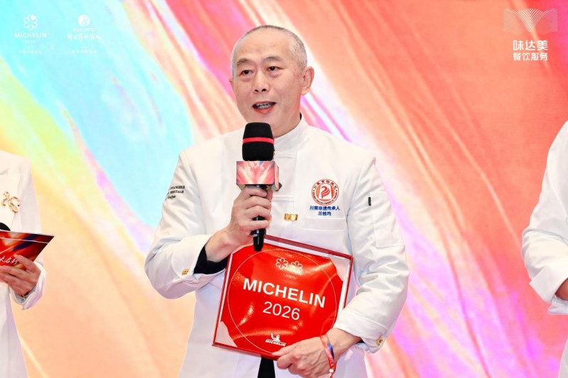 味达美餐饮服务事业部全国销售总监陈长平先生致辞 他提到,成都作为“世界美食之都”,以其“一菜一格、百菜百味”的川菜文化,持续展现饮食魅力。“味达美希望通过此次授牌活动,全力为餐厅和厨师赋能,激励更多成都餐饮人坚守匠心,用多元风味诠释味觉创意,持续创造出打动食客的美味佳肴。” 在授牌环节,2026成都米其林指南收录的餐厅代表依次上台领取奖牌并合影留念。